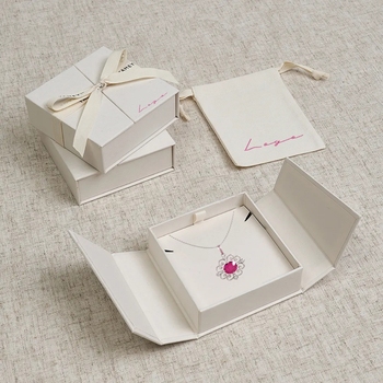 カスタマイズされたロゴエコフレンドリー紙ダブルサイズネックレス包装リボン宝石箱