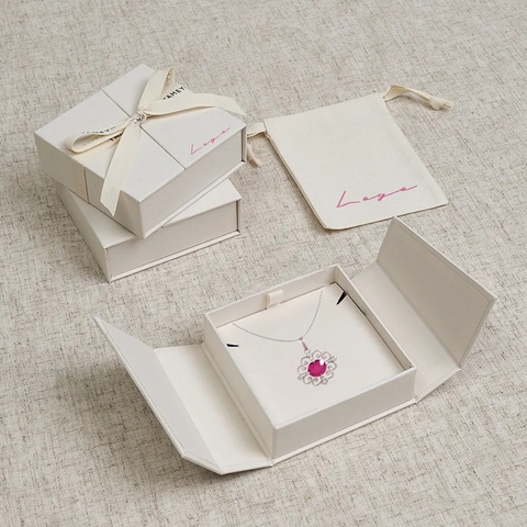 Caja de joyería ecológica de alta gama con logotipo personalizado cinta de embalaje de collar de doble tamaño con forro de esponja de papel artístico brillante